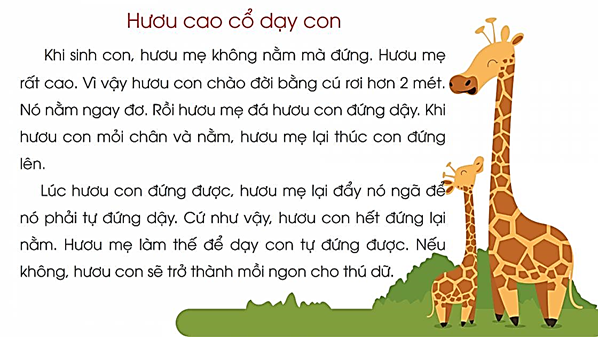 7 câu trắc nghiệm Tiếng Việt lớp 1 Cánh diều Ôn tập giữa học kì 2: Hươu cao cổ dạy con có đáp án