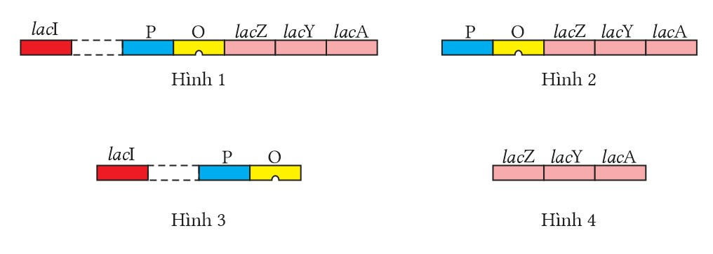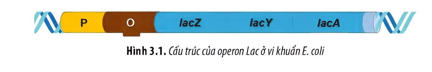 Gene điều hòa (lacI), gene cấu trúc(lacZ, lacY, lacA), vùng O.