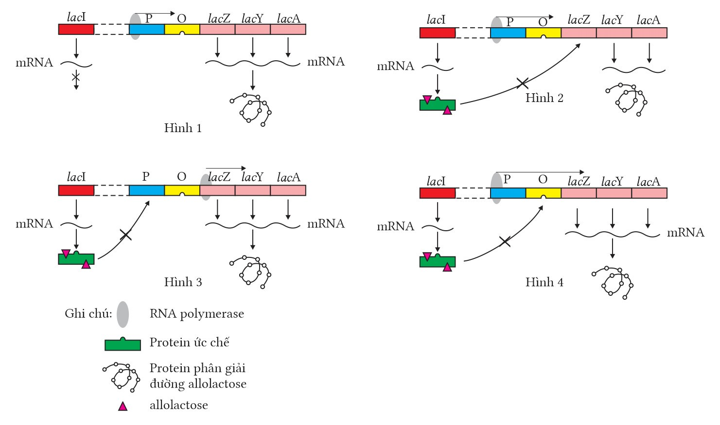 1 – lacZ, lacY, lacA; 2 – tăng.