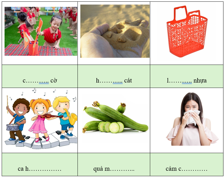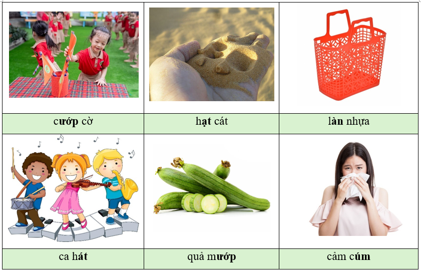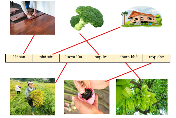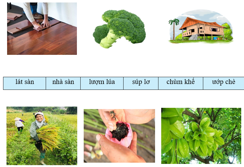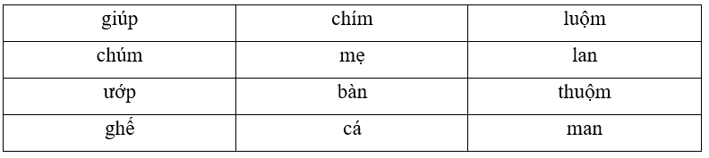 5 từ ngữ: giúp mẹ, chúm chím, ướp cá, luộm thuộm, lan man.