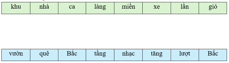 - Từ đúng: khu vườn, nhà tầng, ca nhạc, làng quê, miền Bắc, xe tăng, lần lượt, gió Bấc.