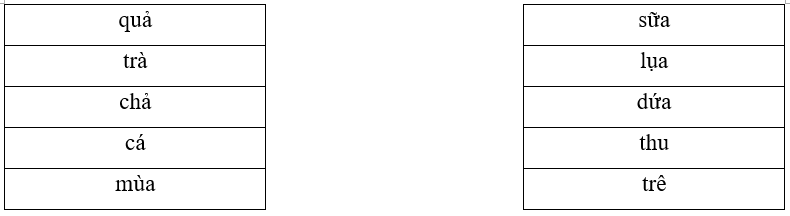 - Từ hoàn chỉnh: quả dứa, trà sữa, chả lụa, cá trê, mua thu.
