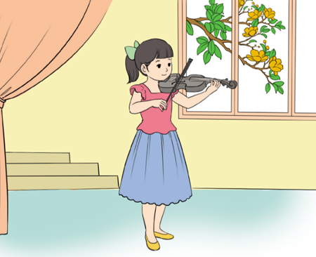 Diễn tả cách chơi đàn vi-ô-lông.