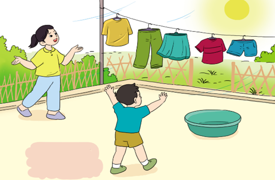 Tre bùng nắng lên Rộn vườn tiếng sáo Nắng đẹp nhắc em Giặt quần, giặt áo.