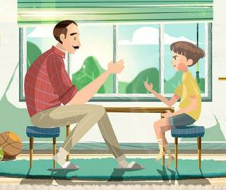 Bố cười với Tôm:
