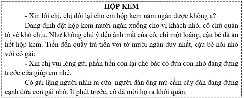b) Cô chủ quán có thái độ khó chịu khi cậu bé muốn đổi hộp kem.