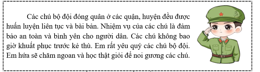 b) Bạn nhỏ đã hứa sẽ chăm ngoan và học giỏi để noi gương các chú bộ đội.
