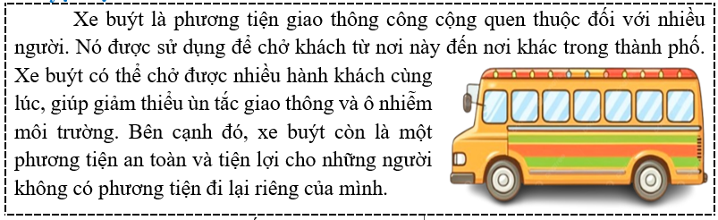 a) Phương tiện được nhắc tới trong bài đọc là xe buýt.