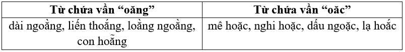 ngoắng, ngoắc, ngoạc, thoắng, hoắng, hoặc.