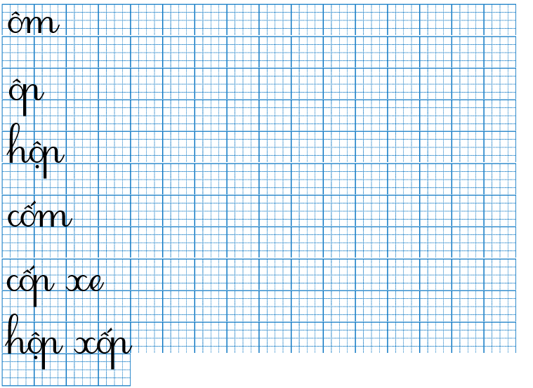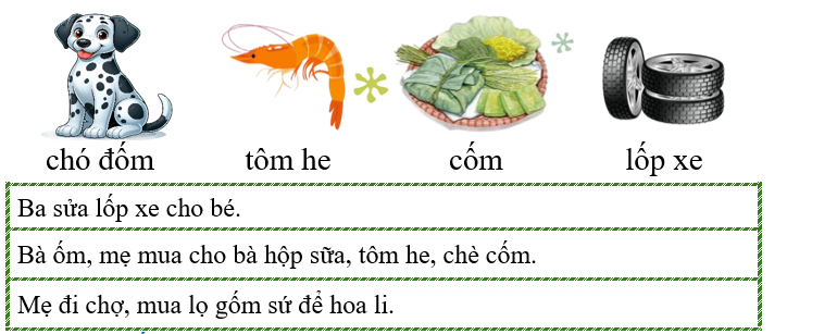 - Tiếng chứa vần “ôm” là: tôm, cốm.