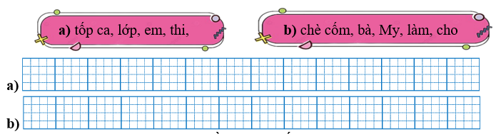 - Tiếng chứa vần “ôp” là: tốp, xốp, bộp.