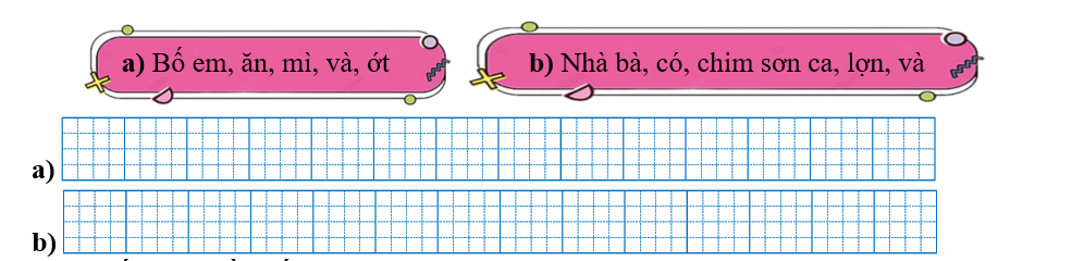 a) Bố em ăn mì và ớt.
