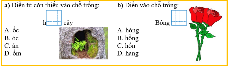 a) 4 từ có vần “ông” là: cầu vồng, ông nội, mông lung, mênh mông.