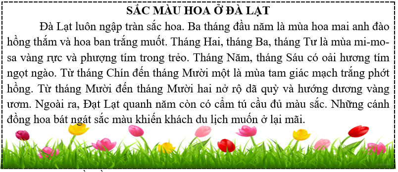a) Bài đọc nói về màu sắc của hoa Đà Lạt.