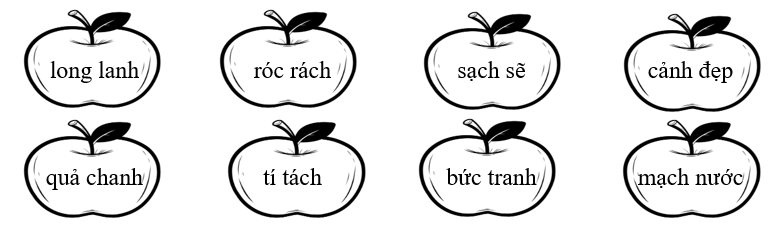 - Tiếng chứa vần “anh” là: long lanh, cảnh đẹp, quả chanh, bức tranh.