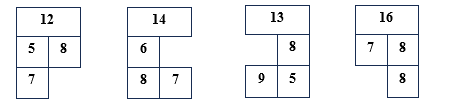 6 + 8 = 14 5 + 6 = 11 9 + 8 = 17 4 + 9 = 13