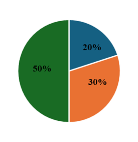Số học sinh yêu thích nhân đậu xanh và thập cẩm chiếm: 30% + 20% = 50%