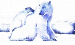 Gấu trắng con thường ở lại với mẹ của chúng ít nhất hai năm để học hỏi các kĩ năng như lặn và bắt cá. |