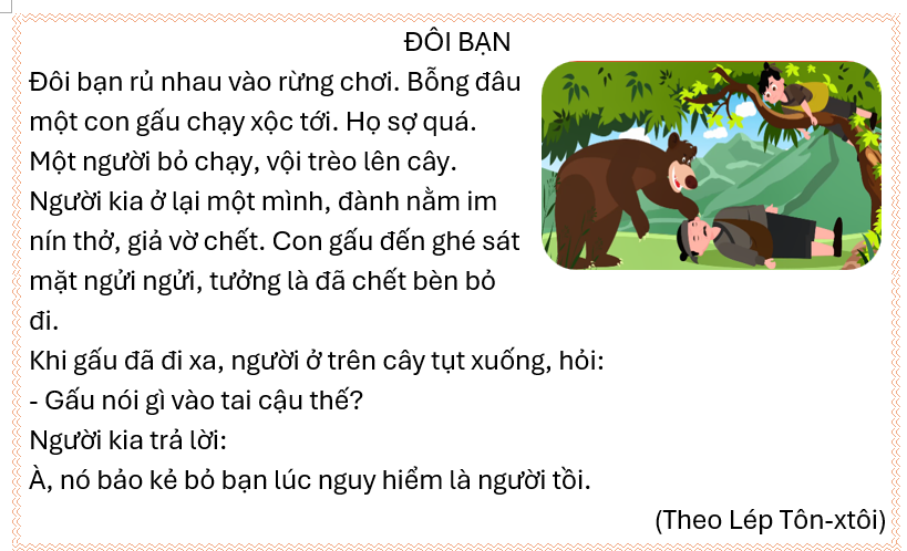 c) Gấu nói kẻ bỏ bạn lúc nguy hiểm là người tồi.