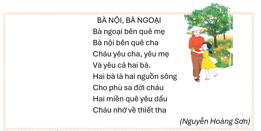 b) Bạn nhỏ yêu thương bố mẹ và hai bà.