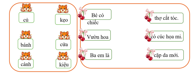 Nối như sau: củ kiệu, bánh kẹo, cánh cửa.