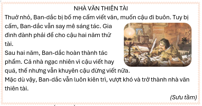 a) Thuở nhỏ, Ban-dắc có niềm đam mê sáng tác.
