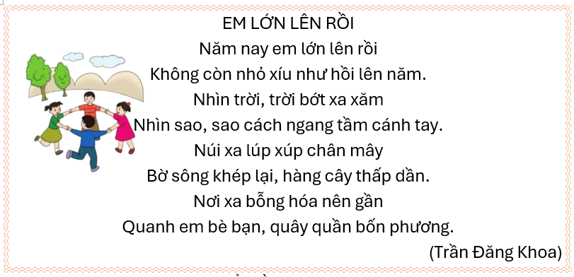 b) Bài thơ được đặt tên là “Em lớn lên rồi” vì bạn nhỏ cao lên và có cái nhìn