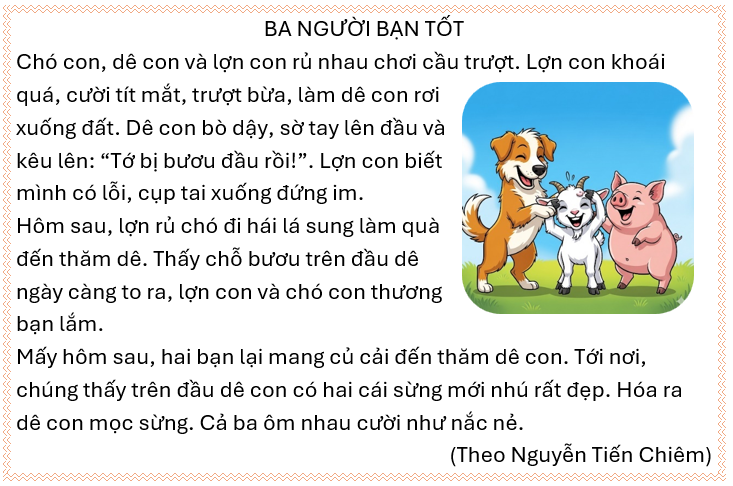 a) Ba người bạn trong truyện là chó con, dê con và lợn con.