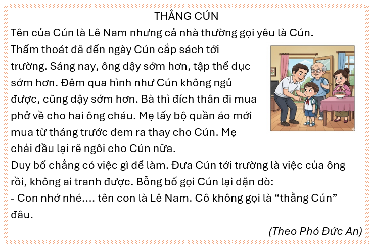 a) Tên của bạn nhỏ trong bài là Cún và Lê Nam.