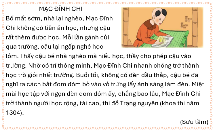 b) Ngọn đèn của Mạc Đĩnh Chi làm bằng cách bắt đom đóm bỏ vào vỏ trứng.