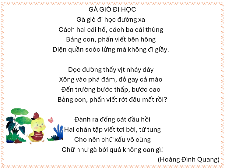 b) Chữ của gà giò xấu vì phải ra đống cát tập viết.