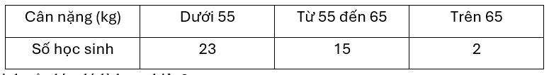 Kết quả khảo sát cân nặng của 25 quả cam ở lô hàng A được cho ở bảng sau: