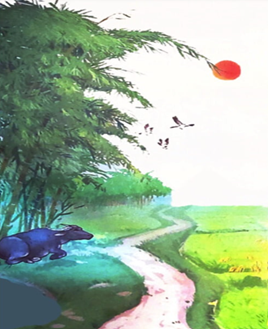 Những trưa đồng đầy nắng, Trâu nằm nhai bóng râm, Tre bần thần nhớ gió, Chợt về đầy tiếng chim. |