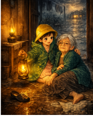 c) (Những giọt sương / Những chiếc lá vàng) rơi đầy trên mặt đất.