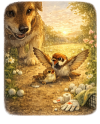 B. Sự xuất hiện của con sẻ già.