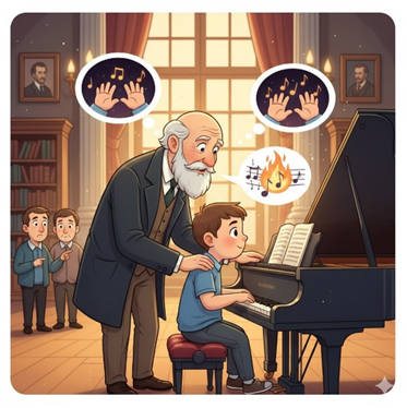 Một ngày kia, cậu được gặp gỡ nhạc sĩ dương cầm lừng danh An-tôn Ru-bin-xtên. Con người nổi tiếng này đã trao cho cậu một lời khích lệ mà trước đây cậu chưa từng được nghe: “Này chú bé, chú có thể chơi pi-a-nô được đấy! Ta nghĩ là chú có thể chơi được… nếu như chú chịu khó luyện tập 7 tiếng mỗi ngày.”