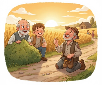 Cậu sinh viên quay sang nói với vị giáo sư: “Chúng ta hãy thử trêu chọc người nông dân xem sao. Em sẽ giấu giày của ông ta rồi thầy trò mình cùng trốn vào sau những bụi cây kia để xem thái độ ông ta khi không tìm thấy đôi giày thế nào!”.