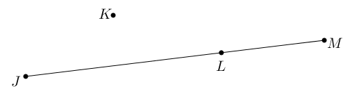 Ta có ba điểm \[J,\,\,L,\,\,M\] thẳng hàng và điểm \[L\] nằm giữa hai điểm \[J\] và \[M\].