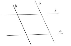 Đường thẳng \[y\] cắt đường thẳng \[b\].