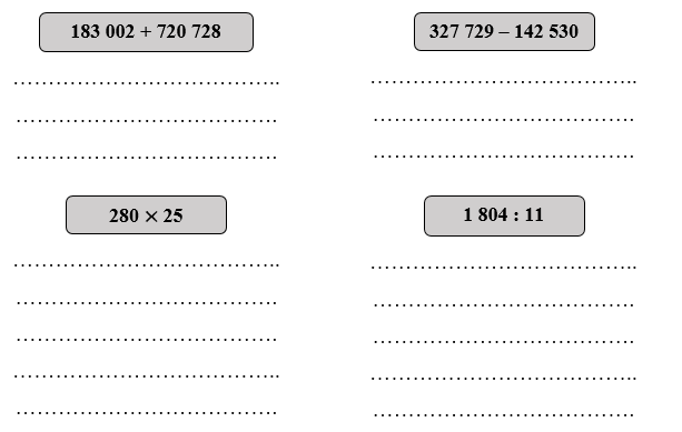 Bài tập ôn hè Toán 4 lên lớp 5 Dạng 1: Cộng, trừ, nhân, chia số tự nhiên có đáp án
