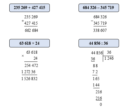 Đặt tính rồi tính (1 điểm) 235 269 + 427 415 (ảnh 1)