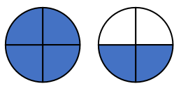 Mỗi hình vẽ được chia thành 4 phần bằng nhau, đã tô màu 6 phần.