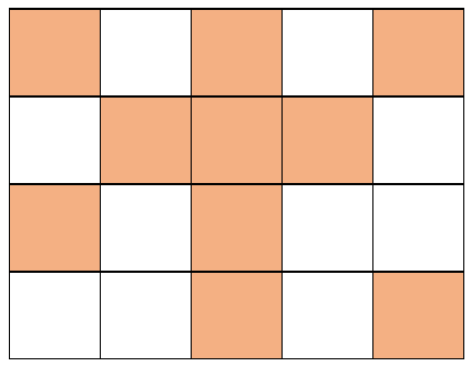 Tô màu \(\frac{3}{5}\) hình, nghĩa cần tô màu là: 20 × \[\frac{3}{5}\] = 12 (ô)