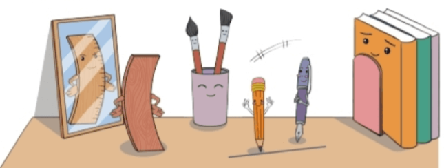 Trong cặp sách, thước kẻ làm bạn với bút mực và bút chì. Chúng sống cùng nhau rất vui vẻ. Mỗi hình vẽ đẹp, mỗi đường kẻ thẳng tắp là niềm vui chung của cả ba.