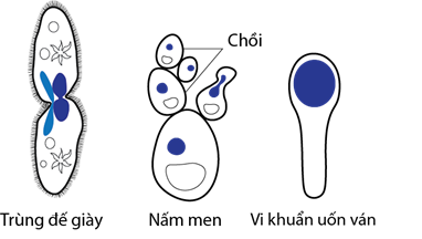 a. Trùng đế giày là sinh vật nhân thực nên vừa sinh sản vô tính (tương tự như ở vi khuẩn), vừa sinh sản hữu tính theo cách tiếp hợp.