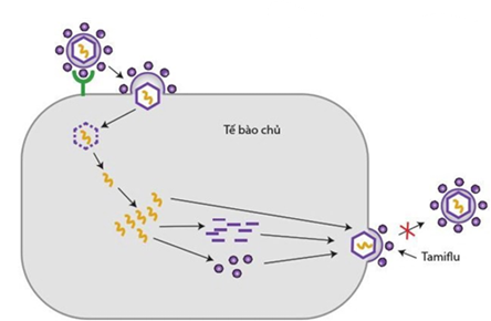 b. Thuốc Tamiflu hoạt động theo nguyên tắc ức chế sự nhân lên của virus trong tế bào vật chủ bằng cách ức chế một giai đoạn nào đó trong các giai đoạn nhân lên của virus.