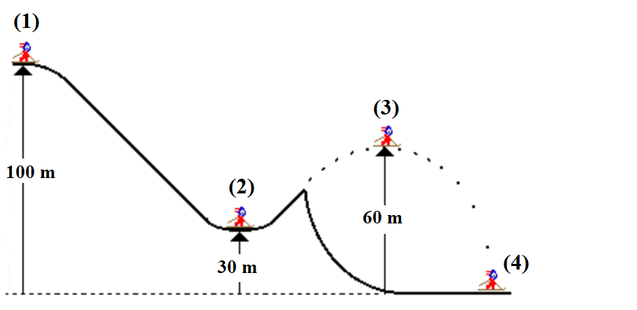 Thế năng của vận động viên tại vị trí (3) là 49,0 kJ.