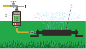 - Số 2: Hộp điều khiển hẹn giờ là bộ não của hệ thống bởi nó chứa các mạch điện tử cho phép người dùng cài đặt thời gian bắt đầu và kết thúc quá trình tưới, từ đó tự động ra lệnh đóng/mở van nước theo lịch trình đã định.