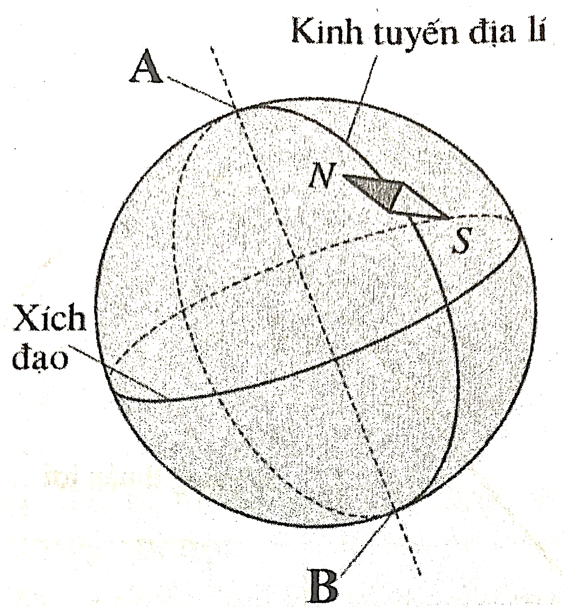 Điểm B gần ứng với cực Nam địa từ, và là cực Bắc địa lí.