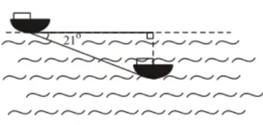(1,5 điểm) Trong một buổi luyện tập, một tàu ngầm ở trên mặt biển bắt đầu lặn xuống và di chuyển theo một đường thẳng tạo với mặt nước một góc \(21^\circ .\)
